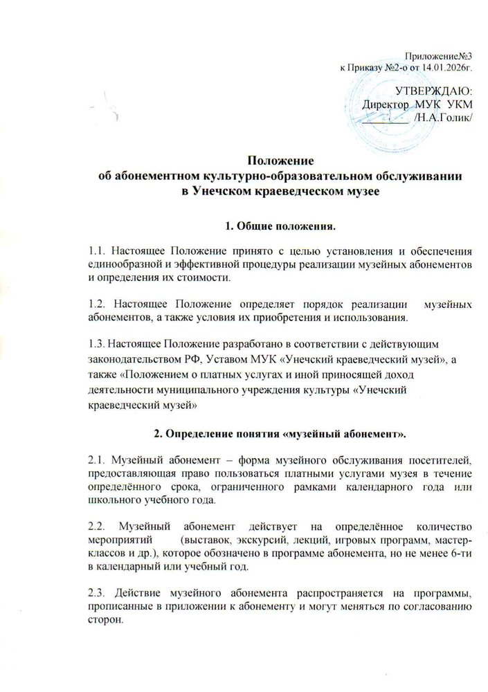 Положение об абонементном культурно - образовательном обслуживании МУК "Унечский краеведческий музей":